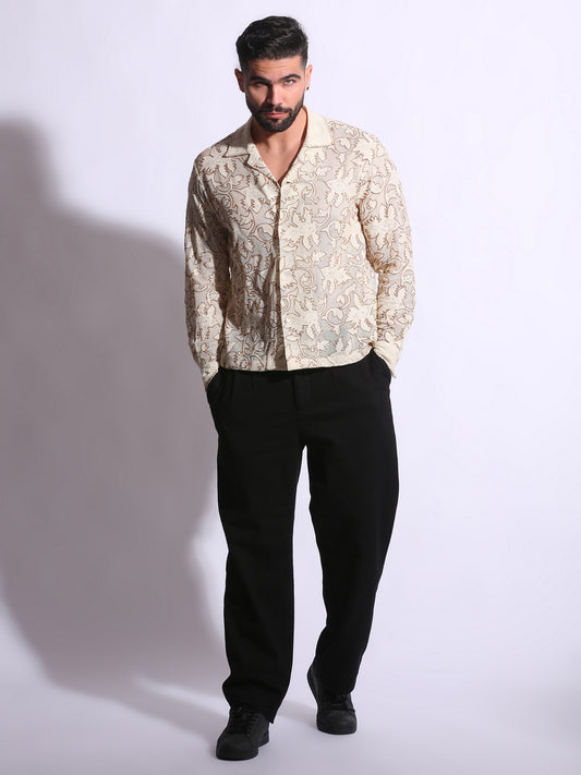 SHEER FLORAL EMBROIDERED SHIRT